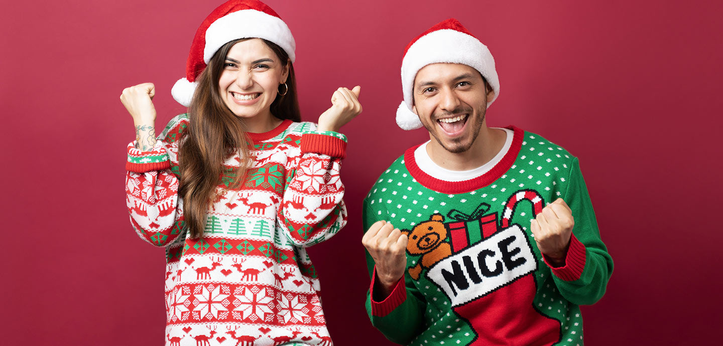 Explore our ugly sweater collection to discover a joyful and flattering outfit.